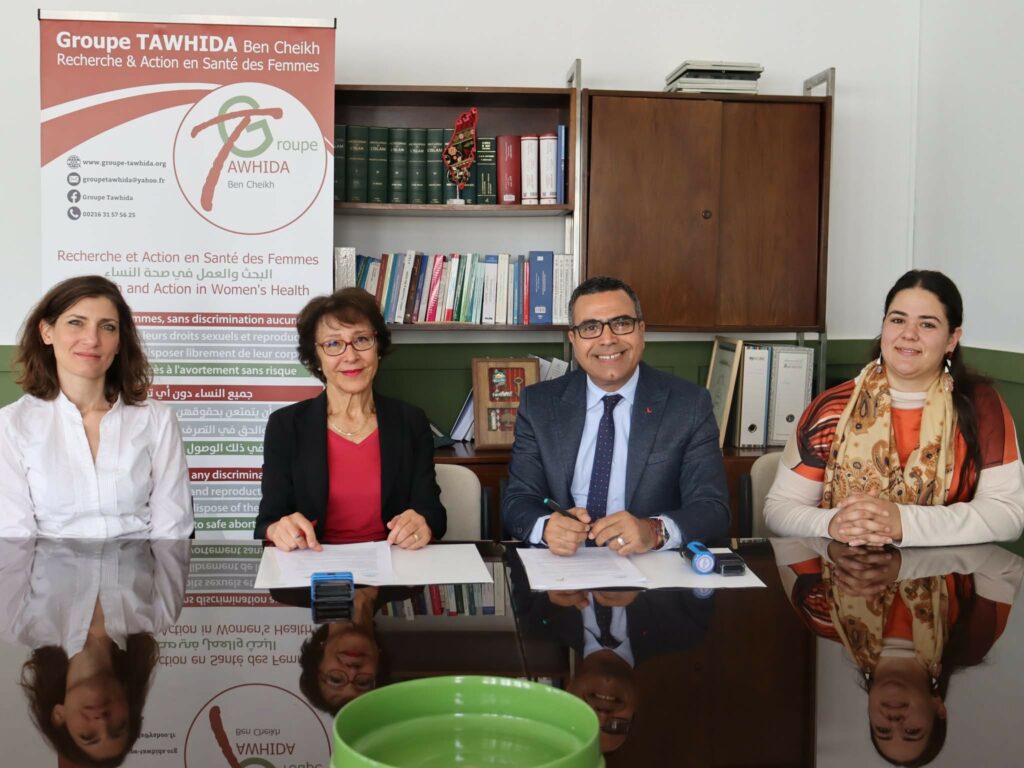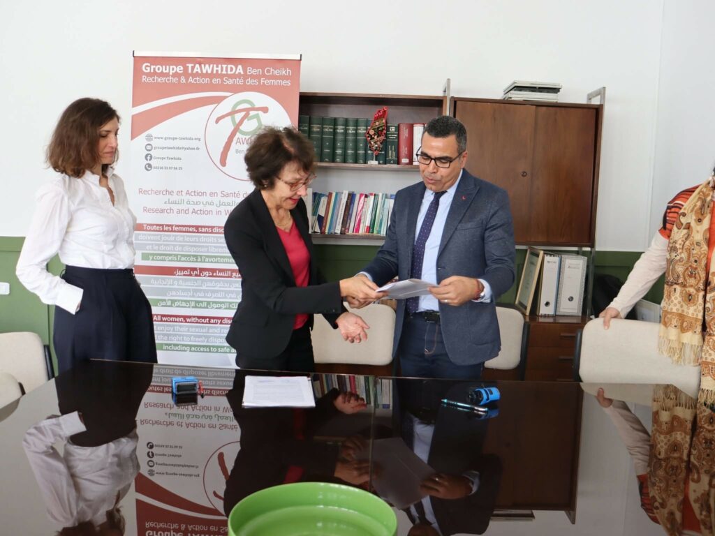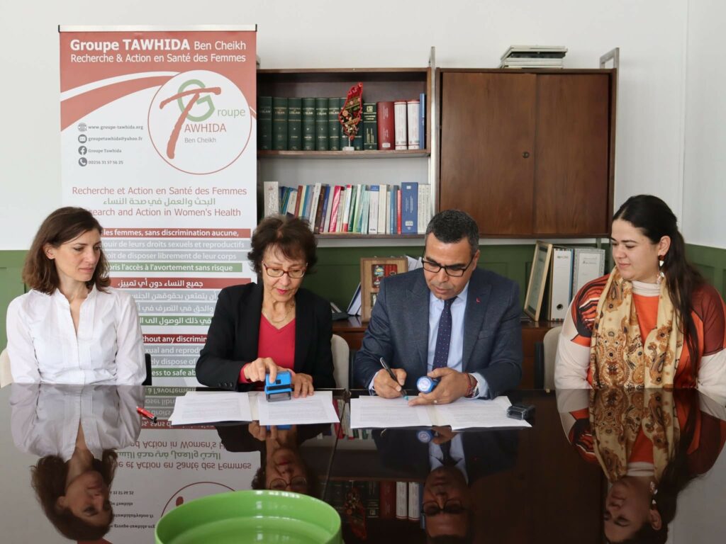 Le Groupe Tawhida Ben Cheikh est très heureux d’annoncer la signature d’une convention de coopération avec la Faculté des Sciences Juridiques, Politiques et Sociales de Tunis (FSJPST). La convention fut signée par le Doyen Pr. Wahid Ferchichi et Dr Hedia Belhadj. Cette convention vise à renforcer les relations de coopération entre les deux institutions et d’asseoir une coopération fructueuse et solide dans le domaine des droits humains, en particulier des droits sexuels et reproductifs et le droit pour toutes les femmes de disposer de leurs corps. Le plan de travail sera développé avec la participation des étudiants, professeurs de la Faculté et l’équipe du Groupe Tawhida.